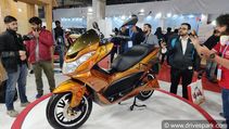 നടന്നുകൊണ്ടിരിക്കുന്ന ഓട്ടോ എക്സ്പോയില് പുതിയ വൈദ്യുത സ്കൂട്ടര് ഇലട്രിക്കയെ വെ...