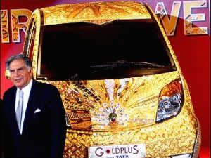 ഭാരതീയ സ്വര്ണപ്പണിയുടെ 5000-മാണ്ട് പ്രമാണിച്ചാണ് മുംബൈയിലെ സ്വര്ണപ്പണിക്കാര് നാനോയെ സ്വര്ണം പൊതിഞ്ഞത്. ടാറ്റ അതേറ്റുവാങ്ങുകയും ചെയ്തു