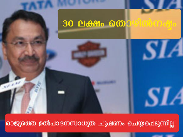 ഇന്ത്യയുടെ വാഹന വ്യവസായത്തിന് കഴിഞ്ഞ രണ്ടുവര്ഷത്തിനിടയില് 25 ലക്ഷം മുതല് 30 ലക്ഷം വരെ തൊഴിലുകള് നഷ്ടമായെന്ന് സിയാം പ്രസിഡണ്ടും ടൊയോട്ട കിര്ലോസ്കര് വൈസ് ചെയര്മാനുമായ വിക്രം കിര്ലോസ്കര് പറഞ്ഞു. സാമ്പത്തികമാന്ദ്യം മൂലം ഓട്ടോവിപണി കടുത്ത പ്രതിസന്ധിയിലകപ്പെട്ടതോടെ ഇത്രയും തൊഴിലവസരങ്ങള് സൃഷ്ടിക്കപ്പെടുകയുണ്ടായില്ലെന്ന് അദ്ദേഹം ചൂണ്ടിക്കാട്ടി.