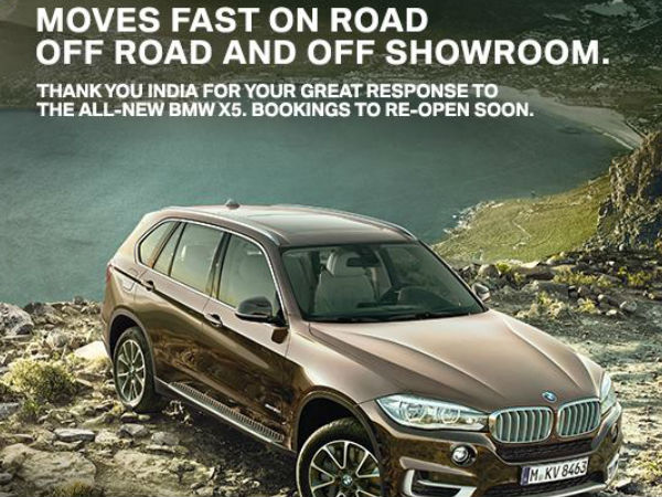 ബിഎംഡബ്ല്യു എക്സ്5 എസ്യുവി മോഡലിന് ആവശ്യക്കാര് വന്തോതില് വര്ധിക്കുന്നത് പ്രമാണിച്ച് വാഹനത്തിന്റെ ബുക്കിങ് താല്ക്കാലികമായി നിറുത്തിവെച്ചു. അധികം താമസിക്കാതെ തന്നെ ബുക്കിങ് പുനസ്ഥാപിക്കുമെന്ന് ബിഎംഡബ്ല്യുവിന്റെ ഫേസ്ബുക്ക് പേജില് അറിയിപ്പ് നല്കിയിട്ടുണ്ട്.