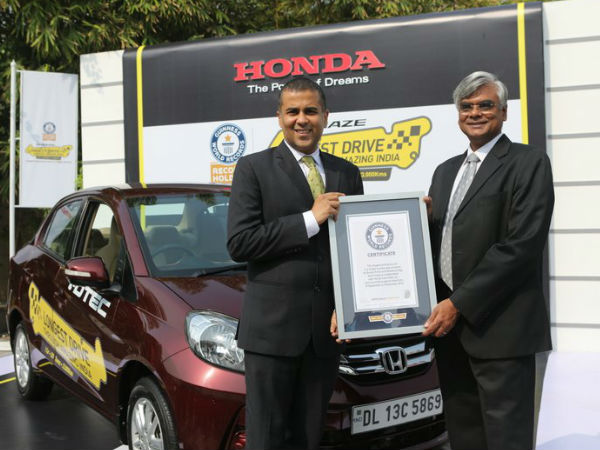 ഹോണ്ട അമേസ് ഗിന്നസ് ബുക്കില് കേറി!