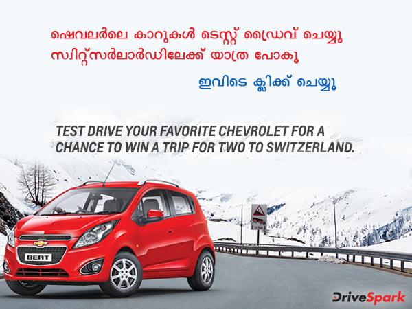ഷെവര്ലെ കാര് ടെസ്റ്റ് ഡ്രൈവ് ചെയ്യൂ സ്വിറ്റ്സര്ലന്ഡിലേക്ക് യാത്ര പോകൂ!