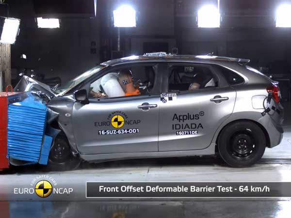 ജപ്പാൻ നിർമാതാവ് മാരുതി സുസുക്കിയുടെ പ്രീമിയം ഹാച്ച്ബാക്ക് ബലെനോയെ യൂറോ എൻസിഎപി ക്രാഷ് ടെസ്റ്റിന് വിധേയമാക്കി. ബലെനോയുടെ മുൻഭാഗവും വശങ്ങളുമാണ് ടെസ്റ്റിനായി കൂടുതൽ പരിഗണിച്ചത്.