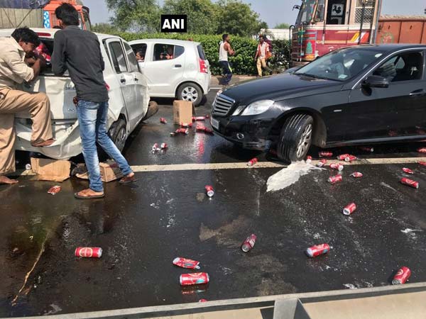 ഏതാനും മിനിറ്റുകള് കൊണ്ട് തന്നെ ഗ്രാമവാസികള് മദ്യക്കുപ്പികള് പൂര്ണമായും അപഹരിച്ചിരുന്നു. അനധികൃതമായ മദ്യക്കടത്ത് വര്ധിച്ചതിനെ തുടര്ന്ന് ഈ വര്ഷമാദ്യം മദ്യ നിരോധനം നിയമം ഗുജറാത്തില് കര്ശനമാക്കിയിരുന്നു.