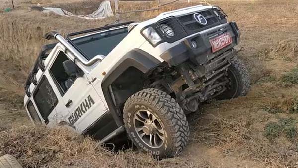 ദുര്ഘടമായ ഓഫ്റോഡ് കടമ്പകള് അനായാസം പിന്നിടുന്ന ഗൂര്ഖ എക്സ്ട്രീമിനെ ദൃശ്യങ്ങള് വെളിപ്പെടുത്തുന്നു. കമ്പനി പുറത്തിറക്കിയ സ്റ്റോക്ക് യൂണിറ്റാണ് ഓഫ്റോഡ് സാഹസത്തിനിറങ്ങിയത്. ആദ്യ നോട്ടത്തിലെ എസ്യുവിയുടെ പരുക്കന് ബോക്സി ഭാവം കാഴ്ച്ചക്കാരന് അനുഭവപ്പെടും. പുതിയ ഒറ്റ സ്ലാറ്റ് ഗ്രില്ല, പ്രൊജക്ടര് ഹെഡ്ലാമ്പുകള്, ബോണറ്റിലെ എല്ഇഡി ഇന്ഡിക്കേറ്ററുകള്, വലിയ മിററുകള് എന്നിവയെല്ലാം മോഡലിന്റെ ഡിസൈന് സവിശേഷതയാണ്.