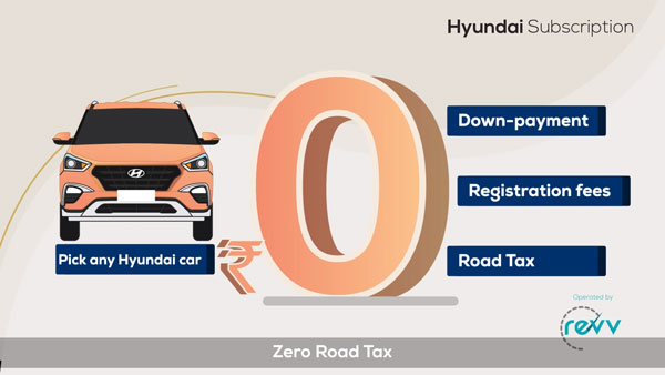 'ഹ്യുണ്ടായി സബ്സ്ക്രിപ്ഷന്' എന്ന് പേരുള്ള ഈ പദ്ധതിയിലൂടെ റോഡ് നികുതി, രജിസ്ട്രേഷന് ചാര്ജുകള്, ഡൗണ് പേയെമന്റ് എന്നിവ കൂടാതെ ഉപഭോക്താക്കള്ക്ക് കാര് സ്വന്തമാക്കാം. മാത്രമല്ല, സൗജന്യ മെയിന്റനന്സും & ഇന്ഷുറന്സ്, റോഡ്സൈഡ് അസിസ്റ്റന്സ് എന്നിവ പാക്കേജില് ഉള്പ്പെടുന്നു.