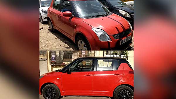 മാത്രമല്ല സ്വിഫ്റ്റിന്റെ ബോഡിയില് പലയിടത്തും പെയിന്റിളകിയ നിലയിലും കാണാം. ഇവിടെ പെയിന്റ് റിസ്റ്റോറിംഗ് എന്ന പ്രക്രിയയാണ് കാര് പുത്തനാക്കാന് സ്വീകരിച്ചിരിക്കുന്നത്. ആദ്യം തന്നെ കാറിലെ പഴകിയ പെയിന്റ് പൂര്ണ്ണമായും നീക്കം ചെയ്ത് ബോഡി വൃത്തിയാക്കുകയാണ് ചെയ്യുക.