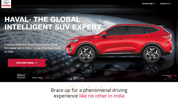 2020 ഓട്ടോ എക്സ്പോയിലൂടെ രാജ്യത്ത് പ്രവേശിച്ച ഗ്രേറ്റ് വാൾ മോട്ടോർസ് തങ്ങളുടെ ഔദ്യോഗിക ഇന്ത്യൻ വെബ്സൈറ്റിന് തുടക്കം കുറിച്ചിരിക്കുകയാണ്. സൈറ്റിൽ ബ്രാൻഡിനെക്കുറിച്ചും അതിന്റെ ഉപ ബ്രാൻഡായ ഹവാലിനെക്കുറിച്ചുമുള്ള വിവരങ്ങളാണ് നൽകിയിരിക്കുന്നത്.