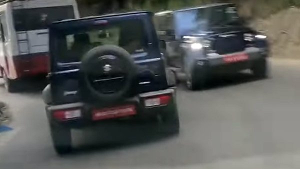 കൊമ്പന്മാര് മുഖാമുഖം; പരീക്ഷണയോട്ടത്തിനിടെ ജിംനിയും മഹീന്ദ്ര ഥാറും കണ്ടുമുട്ടിയപ്പോള്-VIDEO