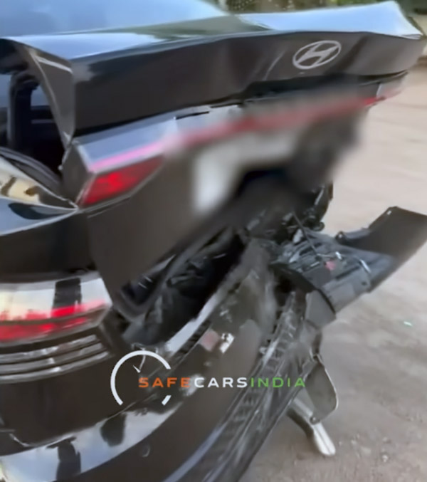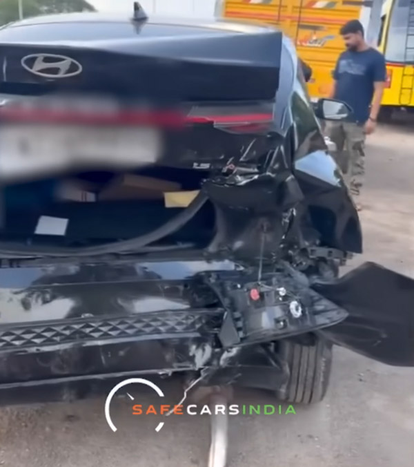 സെഡാൻ്റെ പിൻഭാഗം പൂർണമായും തകർന്നിട്ടുണ്ട്. ടെയിൽഗേറ്റ്, ടെയിൽ ലാമ്പുകൾ, ബമ്പർ, പിൻ വീലുകൾക്ക് പോലും കേടുപാടുകൾ സംഭവിച്ചിട്ടുണ്ട്. ഈ അപകടത്തിൽ സെഡാൻ്റെ സി പില്ലറും തകർന്നു. സെഡാൻ്റെ മുൻവശവും സാരമായി തകർന്നിട്ടുണ്ട്. കാർ ട്രക്കിനടിയിൽപ്പെട്ടതിനാൽ ബോണറ്റും ഹെഡ്ലാമ്പുകളും ബമ്പറും എല്ലാം തകർന്നു.