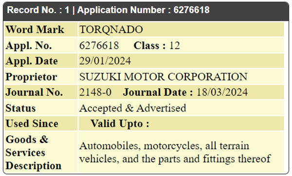 മുൻ തലമുറ ഗ്രാൻഡ് വിറ്റാര കോംപാക്റ്റ് എസ്യുവിയെ എസ്ക്യൂഡോ എന്ന പേരിൽ ചില പ്രത്യേക അന്താരാഷ്ട്ര വിപണികളിൽ സുസുക്കി വിപണനം ചെയ്യാറുണ്ടായിരുന്നു എന്നത് ഇക്കാര്യത്തിൽ ശ്രദ്ധിക്കണം. മറുവശത്ത്, മറ്റൊരു പാസഞ്ചർ വാഹനത്തിന് ടോർക്നാഡോ എന്ന പേര് ഉപയോഗിക്കാം. eVX ഇലക്ട്രിക് എസ്യുവിയുടെ പ്രൊഡക്ഷൻ വേരിയൻ്റിന് ടോർക്നാഡോ ബാഡ്ജ് ലഭിച്ചേക്കും എന്ന് ഞങ്ങൾ പ്രതീക്ഷിക്കുന്നു, കാരണം ഇലക്ട്രിക് കാറുകളുടെ വമ്പൻ ടോർക്കിനെ അനുസ്മരിപ്പിക്കുന്ന ഒരു പേരാണിത്.