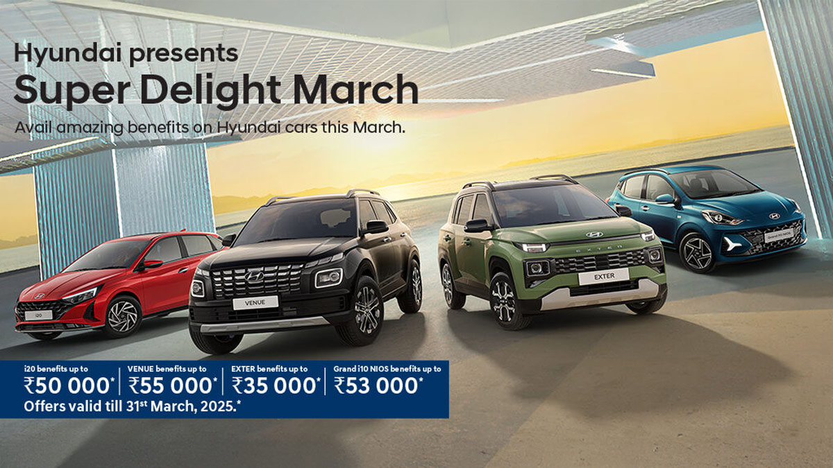 'ഹ്യുണ്ടായി സൂപ്പർ ഡിലൈറ്റ് മാർച്ച്' സെയിൽ പ്രമോഷൻ ക്യാമ്പയിനിന്റെ ഭാഗമായാണ് ഈ ആനുകൂല്യങ്ങൾ അവതരിപ്പിച്ചത്. ,ഗ്രാൻഡ് i10 നിയോസ്, എക്സ്റ്റർ, i20, വെന്യു എന്നീ നാല് മോഡലുകൾക്കാണ് ഡിസ്കൌണ്ടും ഓഫറുകളും അണിനിരത്തിയിരിക്കുന്നത്. അതേസമയം ജനപ്രിയ മോഡലുകളായ ക്രെറ്റ, അൽകസാർ തുടങ്ങിയവയ്ക്ക് ഈ മാസം ആനുകൂല്യങ്ങളൊന്നും കിട്ടില്ല കേട്ടോ.