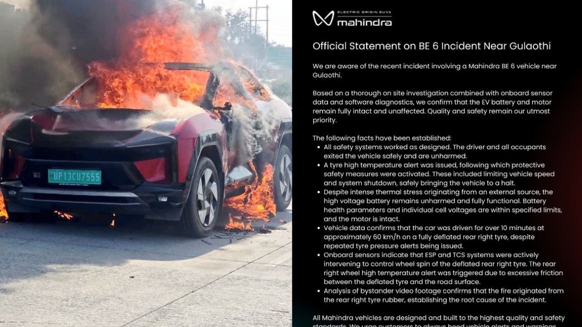 ബാറ്ററി സെല്ലുകളുടെ വോള്ട്ടേജ് നിലവാരം കൃത്യമായ പരിധിക്കുള്ളിലാണെന്നും മോട്ടോറിന് കേടുപാടുകള് സംഭവിച്ചിട്ടില്ലെന്നും ഓണ്ബോര്ഡ് ഡാറ്റകള് വ്യക്തമാക്കുന്നു. സംഭവസ്ഥലത്തുണ്ടായിരുന്ന ദൃക്സാക്ഷികള് പകര്ത്തിയ വീഡിയോ ദൃശ്യങ്ങളും ടയറില് നിന്നാണ് തീ പടര്ന്നതെന്ന വസ്തുത ശരിവെക്കുന്നുണ്ട്. ഇതോടെ ബാറ്ററിയുടെ സുരക്ഷയെ സംബന്ധിച്ച ആശങ്കകള്ക്ക് പരിഹാരമായിരിക്കുകയാണ്. ഉയര്ന്ന ഗുണനിലവാരത്തിലും സുരക്ഷാ മാനദണ്ഡങ്ങളിലൂന്നിയുമാണ് എല്ലാ മഹീന്ദ്ര വാഹനങ്ങളും നിര്മ്മിക്കുന്നതെന്ന് കമ്പനി പ്രസ്താവനയില് ആവര്ത്തിച്ചു.