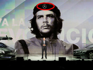 ഈ വിപണനതന്ത്രം തന്നെയാണ് മെഴ്സിഡസ് ബെന്സും പയറ്റിയത്. ആല്ബര്ട്ടോ കൊര്ദ എന്ന ഫോട്ടോഗ്രാഫര് പകര്ത്തിയ ചെഗുവേരയുടെ പ്രശസ്തമായ ഫോട്ടോയില് മെഴ്സിഡസ് ഒരു ഫോട്ടോഷോപ്പ് പണി നടത്തി. ചെയുടെ ബെരെറ്റിലെ നക്ഷത്ര ചിഹ്നത്തിന്റെ സ്ഥാനത്ത് മെഴ്സിഡസ് ബെന്സിന്റെ അടയാളം പതിച്ചു. യു എസ്സിലെ ലാസ് വേഗാസില് നടന്ന അന്താരാഷ്ട്ര കണ്സ്യൂമര് ഇലക്ട്രോണിക്സ് ഷോയുടെ വേദിയില് സ്കീനില് ഈ ചിത്രം തെളിഞ്ഞു.