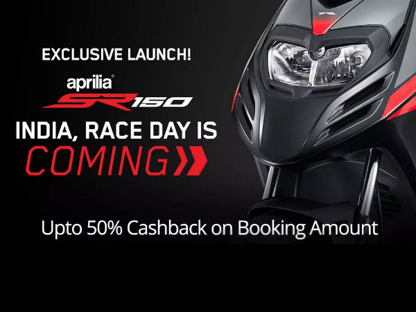 അപ്രീലിയ എസ്ആർ 150 വാങ്ങിക്കുമ്പോൾ 50%ക്യാഷ്ബാക്ക് ലഭ്യമാക്കാം