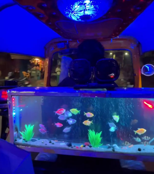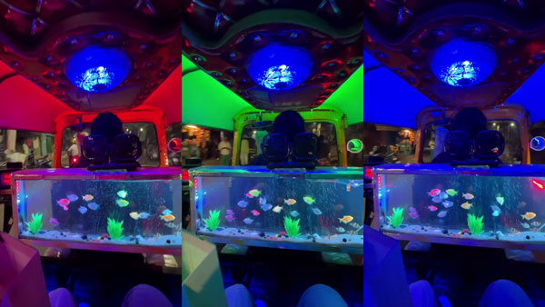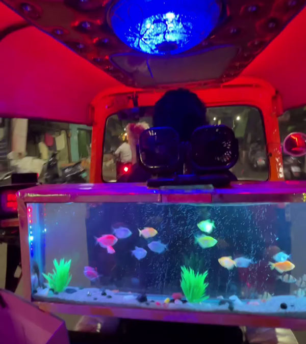 ഒരു യാത്രക്കാരനാണ് സോഷ്യൽ മീഡിയയിൽ വീഡിയോ പങ്കു വച്ചിരിക്കുന്നത്. വിവിധ നിറത്തിലുള്ള ലൈറ്റുകൾ അത് പോലെ തന്നെ ഡ്രൈവർ സീറ്റിന് പിന്നിൽ ഒരു അക്വേറിയവും അതിന് മുകളിലായി സ്പീക്കറുകളും സ്ഥാപിച്ചിട്ടുണ്ട്. നഗരത്തിലൂടെ തിരക്കിട്ട് പായുമ്പോഴും യാത്രക്കാരെ സന്തോഷിപ്പിക്കാന ഓട്ടോചേട്ടൻ ചെയ്ത പ്രവർത്തിക്ക് നിറഞ്ഞ കൈയ്യടിയാണ് സമൂഹമാധ്യമങ്ങളിൽ ലഭിച്ചു കൊണ്ടിരിക്കുന്നത്. എത്ര കാശാണെങ്കിലും ഇതിലൊന്ന് യാത്ര ചെയ്യണമെന്നാണ് ഭൂരിഭാഗം പേരും കമൻ്റ് ഇട്ടിരിക്കുന്നത്.