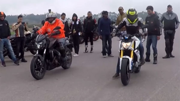 മത്സരത്തിന്റെ ഒരുഘട്ടത്തില് പോലും G310 R -ന് അരികിലെത്താന് ഡോമിനാറിന് കഴിഞ്ഞില്ല. മത്സരത്തിന്റെ രണ്ടാം റൗണ്ടിലും അത്ഭുതങ്ങള് നടന്നില്ല. ഡോമിനാറിനെ കാഴ്ച്ചക്കാരനാക്കി ബിഎംഡബ്ല്യുവിന്റെ കുഞ്ഞന് ബൈക്ക് കുതിച്ചു.