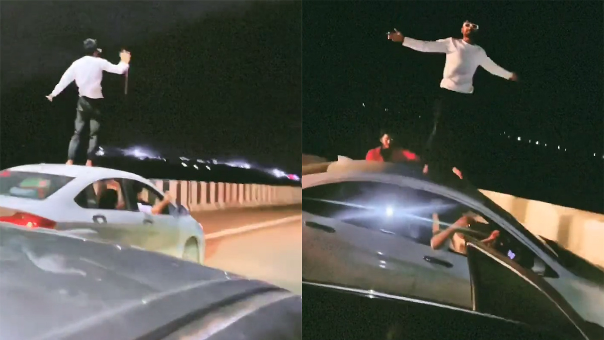 മെയ്ക്ക് എ സീനാണോ എന്തോ; ഓടിക്കൊണ്ടിരിക്കുന്ന കാറിൻ്റെ റൂഫിൽ ഡാൻസ് കളിച്ച് യുവാവ് അറസ്റ്റിൽ