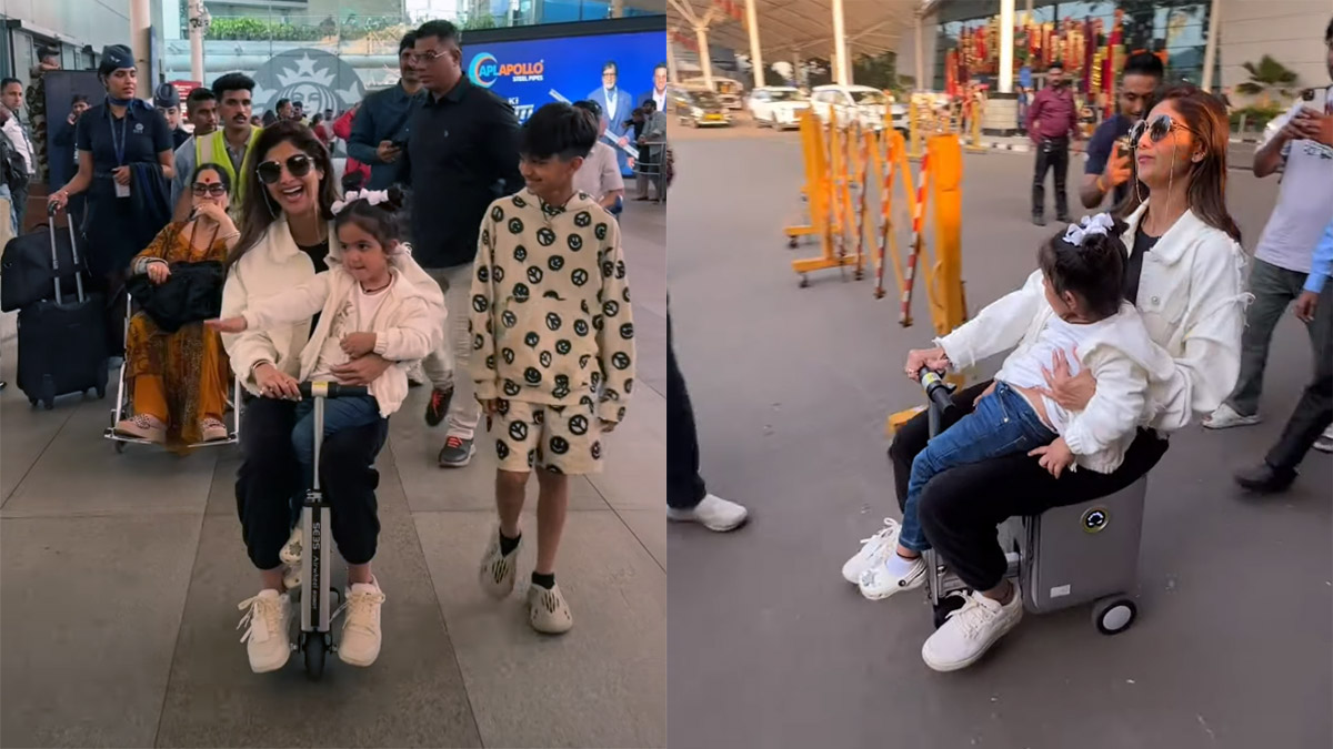 എയർപോർട്ടിൽ ഇലക്ട്രിക് മോട്ടോറൈസ്ഡ് ലഗേജ് കാരിയറുമായി എത്തി വാർത്തകളിൽ ഇടംപിടിക്കുന്നത് മറ്റാരുമല്ല, നമ്മുടെ സ്വന്തം ശിൽപ ഷെട്ടിയാണ് താരം. മടിയിൽ മകളെ ഇരുത്തി മോട്ടോർ ഘടിപ്പിച്ച ലഗേജ് കാരിയറുമായി ശിൽപ്പ മുംബൈ വിമാനത്താവളത്തിൽ ചുറ്റിയടിക്കുന്ന വീഡിയോ എന്തായാലും ഇന്റർനെറ്റിൽ വൈറലായിട്ടുണ്ട്. കൌതുക കാഴ്ച്ചയായതിനാൽ താരത്തിന്റെ പിന്നാലെ ക്യാമറകണ്ണുകളും പായുന്നത് വീഡിയോയിൽ കാണാം.