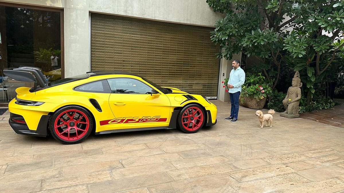 അരികിൽ അദ്ദേഹത്തിന്റെ ഭംഗിയുള്ള ചെറിയ നായയും ഒപ്പമുണ്ട്. ഭൂപേഷ് സ്വന്തമാക്കുന്ന പോർഷയിൽ നിന്നുള്ള ഏഴാമത്തെ സൂപ്പർകാറാണ് എന്നതു കേട്ടാൽ പലർക്കും ബോധക്കേടുമുണ്ടായേക്കാം. 992 911 GT3 RS മോഡലിന്റെ യെല്ലോ കളർ ഓപ്ഷനൊപ്പം മഗ്നീഷ്യത്തിൽ പണിത വീലുകൾക്ക് തനതായ ചുവപ്പ് നിറമാണ് അദ്ദേഹം തെരഞ്ഞെടുത്തിട്ടുണ്ട്. മൊത്തത്തിൽ ഒരു റാലി കാറിന്റെ ഫീൽ കിട്ടാൻ വേണ്ടിയായിരിക്കും ഈ കോമ്പിനേഷൻ മുതലാളി തെരഞ്ഞെടുത്തിരിക്കുന്നത്.