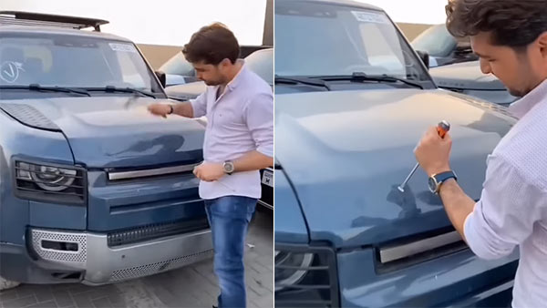 അതില് ഒരു യുവാവ് കയ്യില് ചുറ്റികയുമായി പ്രീമിയം എസ്യുവിയെ സമീപിക്കുന്നത് കാണാം. കൂടാതെ, ഒരു സ്ക്രൂഡ്രൈവറും കൈയ്യില് ഉണ്ട്. ആദ്യം അവന് ചുറ്റിക കൊണ്ട് ലാൻഡ് റോവർ ഡിഫന്ഡറിന്റെ ബോണറ്റില് അടിക്കുന്നു. കുറച്ച് അടികള്ക്ക് ശേഷം എസ്യുവിയുടെ ബോഡി ചെത്തിക്കളയാന് അദ്ദേഹം സ്ക്രൂഡ്രൈവര് ഉപയോഗിക്കുന്നു. അവന് സ്ക്രൂഡ്രൈവര് ഒരു ആണിയായി ഉപയോഗിക്കുകയും ബോണറ്റിലേക്ക് ഒരു ചുറ്റിക കൊണ്ട് അടിച്ച് കയറ്റാന് ശ്രമിക്കുകയും ചെയ്യുന്നത് കാണാം.