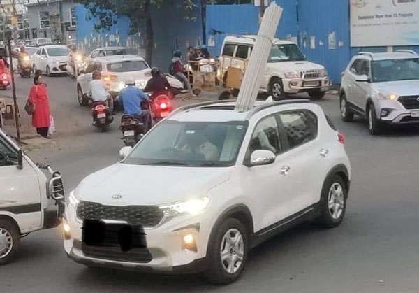 ഒരു ഗുഡ്സ് ഓട്ടോ വിളിച്ചാല് കുറച്ച് പണം പൊടിയുമെല്ലോ എന്നോര്ത്താണ് ചിലര് ക്യാഷ് ലാഭിക്കാനായി ഈ രീതി അവലംബിക്കുന്നത്. കുറച്ച് പണം ലാഭിക്കാന് വേണ്ടി ഇത്തരം പണികള് ചെയ്യുമ്പോള് അതിന് പിന്നിലുള്ള അപകടങ്ങളെക്കുറിച്ച് അവര് ശ്രദ്ധാലുക്കളല്ല. അത്തരത്തില് നമ്മള് ആശ്ചര്യപ്പെട്ട് പോകുന്ന ഒരു ഉദാഹരണമാണ് കഴിഞ്ഞ ദിവസം ഉണ്ടായത്. കിയ സോനെറ്റ് കാറിന്റെ സണ്റൂഫിലൂടെ വാഹനമുടമ പ്ലാസ്റ്റിക് പൈപ്പുകളുടെ ഒരു കെട്ട് കയറ്റുകയായിരുന്നു.