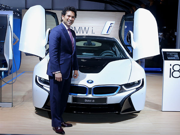 സച്ചിന് ടെന്ഡുല്ക്കര് ബിഎംഡബ്ല്യു ഐ8ന്റെ അവതരണത്തിനായി ഓട്ടോ എക്സ്പോയിലേക്ക് എത്തിച്ചേര്ന്നു.