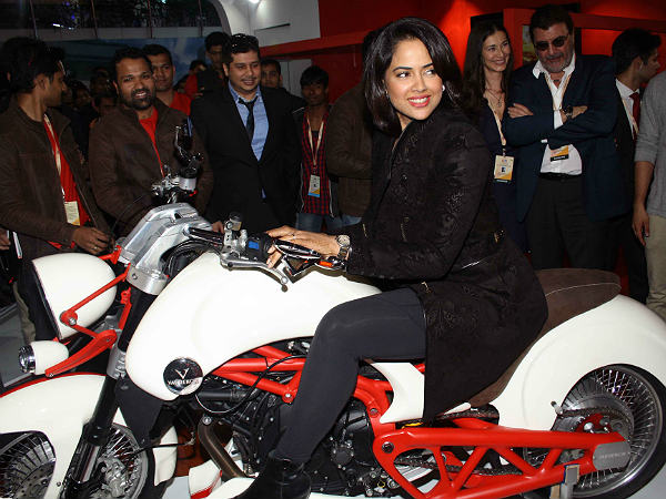 സമീറ റെഡ്ഢിയാണ് എക്സ്പോയിലെത്തിയ മറ്റൊരു സെലിബ്രിറ്റി. കസ്റ്റം ബൈക്ക് നിര്മാതാക്കളായ വാര്ഡേഞ്ചിയുടെ പവലിയനിലാണ് സമീറയെ ഞങ്ങള് കണ്ടെത്തിയത്.