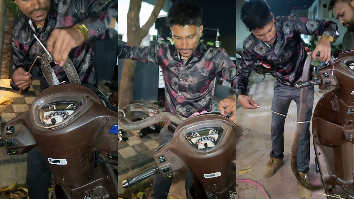 സ്കൂട്ടറിൽ റൈഡ് പോകാൻ 'മൂർഖനും'! ഹെഡ്ലൈറ്റ് കവറിൽ നിന്ന് രക്ഷപ്പെടുത്തുന്ന വീഡിയോ വൈറൽ