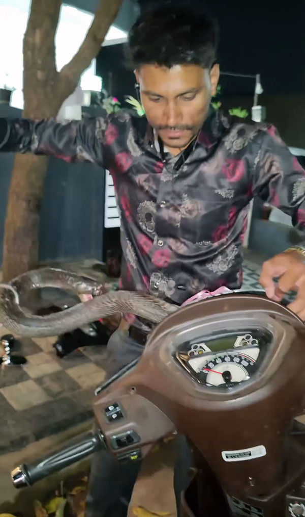 പാമ്പ് പിടുത്ത വിദഗ്ധനായ രാജേഷ് ഇൻഡോരിയാണ് സമൂഹമാധ്യമങ്ങളിൽ വീഡിയോ പങ്കു വച്ചിരിക്കുന്നത്. രക്ഷാപ്രവർത്തകൻ ആദ്യം സ്കൂട്ടർ അതിൻ്റെ മുൻ പാനൽ തുറന്ന് ഒരു വ്യക്തിയുടെ കൈകളിൽ മുർഖനെ കാണിക്കുന്നിടത്താണ് വീഡിയോ ആരംഭിക്കുന്നത്. പാമ്പിനെ രക്ഷിക്കാൻ ഇടമൊരുക്കാൻ സഹായിക്കുന്നതിനായി ഹെഡ്ലൈറ്റിൻ്റെ കവർ അഴിച്ചിട്ടുണ്ടെന്ന് കാണാം. ഹെഡ്ലൈറ്റ് കവറിനുള്ളിൽ പാമ്പ് കുടുങ്ങിക്കിടക്കുന്നത് രക്ഷാപ്രവർത്തകൻ വീഡിയോയിൽ കാണിക്കുന്നുണ്ട്.