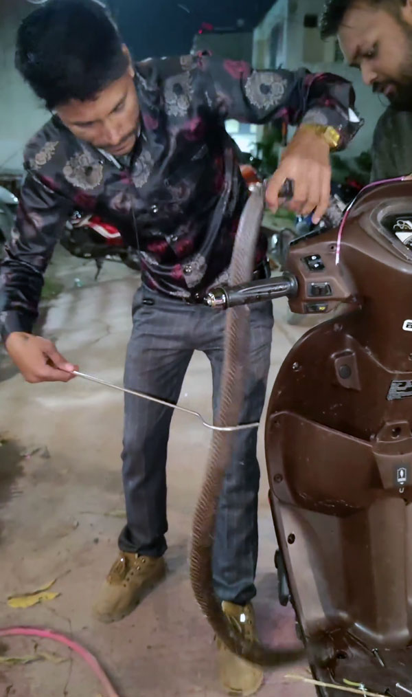 പാമ്പ് പോലുള്ള ഉരഗങ്ങൾ തണുത്ത രക്തമുള്ള മൃഗങ്ങളാണ്. അന്തരീക്ഷം തണുത്തുറഞ്ഞാൽ, ശരീരത്തിന്റെ ഊഷ്മാവ് നിലനിറുത്താൻ പലപ്പോഴും ചൂട് തേടി പുറത്തിറങ്ങാറുണ്ട്. വരണ്ടതും ചൂടുള്ളതുമായ സ്ഥലം തേടി പാമ്പ് സ്കൂട്ടറിനുള്ളിലേക്ക് ഇഴഞ്ഞു കയറിയതാകാം. നിങ്ങൾ എപ്പോഴെങ്കിലും അത്തരമൊരു സാഹചര്യത്തിൽ സ്വയം കണ്ടെത്തുകയാണെങ്കിൽ, പാമ്പിനെ സ്വയം നീക്കം ചെയ്യാൻ ശ്രമിക്കരുത്, കാരണം അത് അപകടകരമാണ്.
