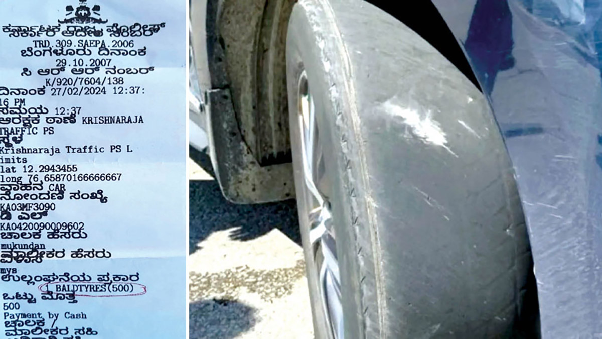 മൈസൂരിൽ ഒരു ട്രാഫിക് എൻഫോഴ്സ്മെൻ്റ് ഓപ്പറേഷനിൽ വച്ച് ഒരു കാർ ഉടമ തൻ്റെ വാഹനത്തിൻ്റെ ടയറുകൾ തേഞ്ഞ് തീരാറായ നിലയിലായത് കൊണ്ട് ഉദ്യോഗസ്ഥർ പിഴ ചുമത്തി. മൈസൂരിലെ നഞ്ചൻഗുഡ് റോഡിലാണ് സംഭവം, സംഭവം ഇൻ്റർനെറ്റിൽ വൈറലായിരിക്കുകയാണ്. നഞ്ചൻഗുഡിൽ നിന്ന് മൈസൂരിലേക്ക് പോവുകയായിരുന്ന ഡ്രൈവർ മുകുന്ദിനെ ട്രാഫിക് പോലീസ് പതിവ് പരിശോധനകൾ നടത്തുകയായിരുന്നു.