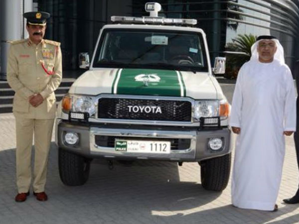 ദുബൈ പൊലീസ് വാങ്ങിയ ടൊയോട്ട ലാന്ഡ് ക്രൂയിസര്. അടുത്ത താളുകള് മുതല് പൊലീസ് സേനയുടെ പക്കലുള്ള മറ്റ് വാഹനങ്ങളെ പരിചയപ്പെടാം.