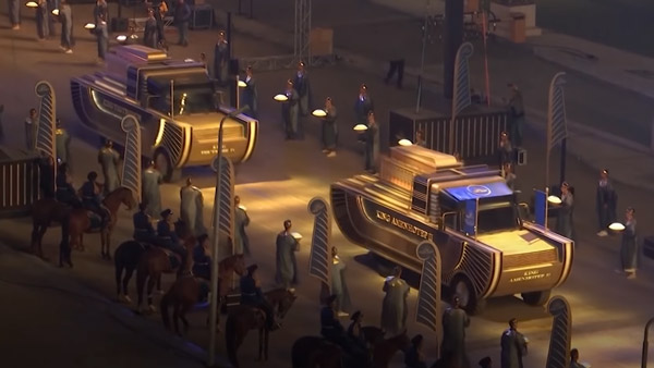 യാത്ര സുഗമമാക്കുന്നതിന്, റൂട്ടിലുള്ള റോഡുകൾ പൂർണമായി ക്ലിയർ ചെയ്യുകയും ഒന്നിലധികം മോട്ടോർസൈക്കിളുകൾ ഉപയോഗിച്ച് കോൺവോയിക്ക് മുഴുവനും അകമ്പടി നൽകുകയും ചെയ്തു. പുരാതന ഫറവോന്മാരുടെ വാഹനങ്ങളായിരുന്ന കുതിരകൾ വലിക്കുന്ന യുദ്ധരഥങ്ങളുടെ തനിപ്പകർപ്പുകളും ഇതിൽ ഉപയോഗിച്ചിരുന്നു.