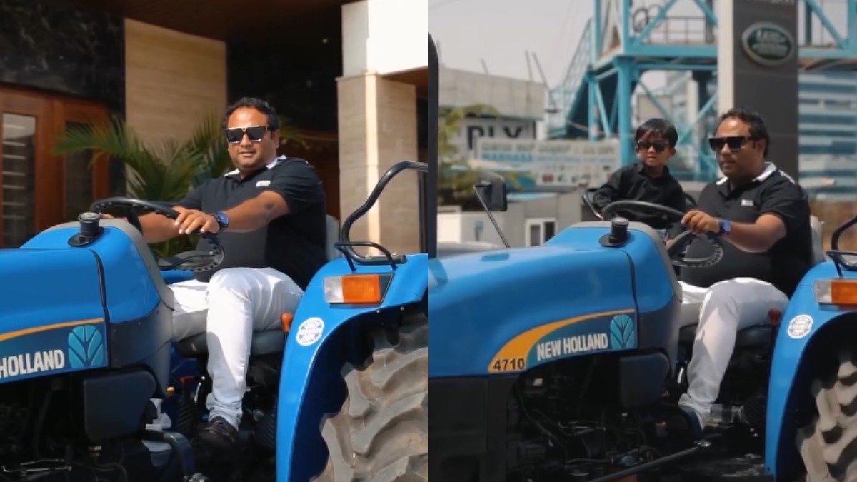 കൃഷിഭൂമിയാൽ ചുറ്റപ്പെട്ട ബെംഗളൂരുവിലെ ഒരു മാളികയുടെ ആകാശ ദൃശ്യത്തോടെയാണ് വീഡിയോ ആരംഭിക്കുന്നത്. വീടിനുള്ളിൽ രണ്ട് വാഹനങ്ങൾ പാർക്ക് ചെയ്തിരിക്കുന്നതും കാണാം. അപ്പോഴേ മനസിലാക്കാമല്ലോ തന്റെ പുതിയ ഡിഫെൻഡറിന്റെ ഡെലിവറിക്കായി ട്രാക്ടറിൽ ലാൻഡ് റോവർ ഡീലർഷിപ്പിൽ എത്തുന്ന യുവാവ് ചില്ലറക്കാരല്ലെന്ന്. പോർച്ചിൽ ഒരു ഫോർച്യൂണറും രണ്ട് ടൊയോട്ട ഇന്നോവ ക്രിസ്റ്റയും ഒരു മഹീന്ദ്ര ഥാറുമാണ് ഇദ്ദേഹത്തിന് ഇപ്പോൾ സ്വന്തമായുള്ളത്.