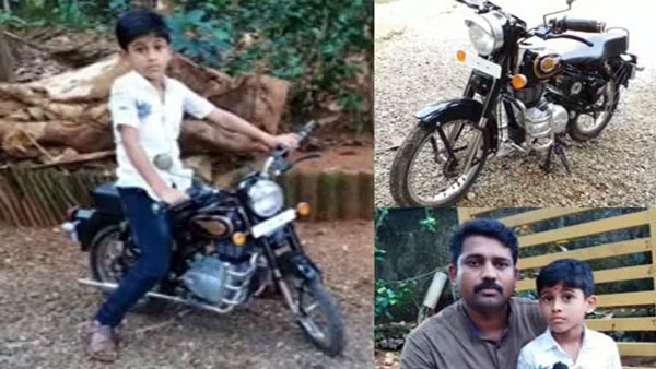 കൊല്ലം സ്വദേശി അനൂപാണ് മകൻ അദ്വൈദിനു വേണ്ടി ഈ കൊച്ചു ബുള്ളറ്റ് നിർമ്മിച്ചിരിക്കുന്നത്. മിനി റോയൽ എൻഫീൽഡ് ബുള്ളറ്റിൽ 5-7 വയസ്സിനിടയിൽ പ്രായമുള്ള കുട്ടി റൈഡറിനെ വീഡിയോയിൽ കാണാം.