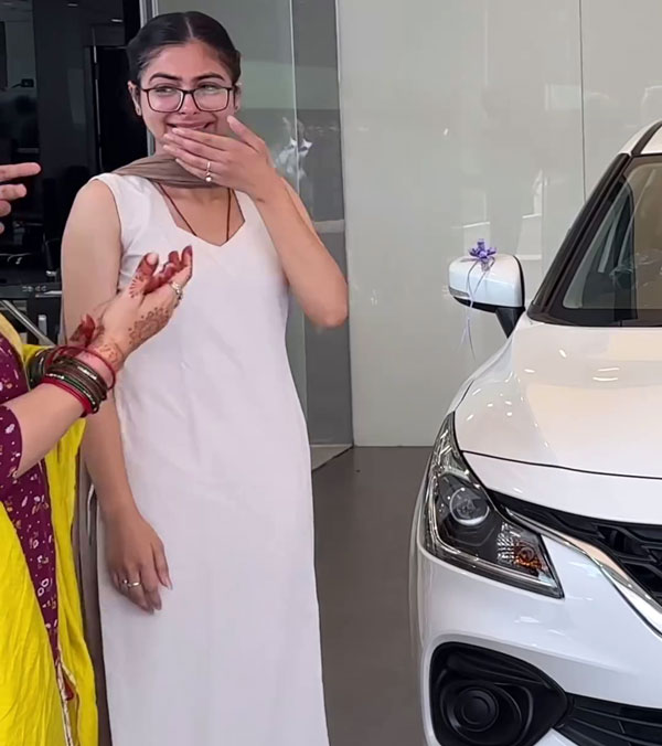 ഷോറൂമിൽ എത്തിയ പെൺകുട്ടി കവർ ചെയ്ത കാറിന് സമീപം പോകുന്നത് കാണാം. താമസിയാതെ, ഈ പ്രത്യേക കാർ തൻ്റേതാണെന്ന് അവളോട് പറയുകയാണ്, നിമിഷങ്ങൾക്ക് ശേഷം അവൾ സന്തോഷത്തോടെ കരയാൻ തുടങ്ങുകയാണ്. ഈ സമയത്ത്, മകൾക്ക് ഈ പുതിയ ഹാച്ച്ബാക്ക് സമ്മാനിച്ചതിന് ശേഷം പിതാവ് സന്തോഷത്തോടെ പുഞ്ചിരിക്കുന്നത് കാണാം. അവളുടെ അച്ഛൻ അവൾക്കായി ഡെൽറ്റ എജിഎസ് ഓട്ടോമാറ്റിക് വേരിയൻ്റാണ് തിരഞ്ഞെടുത്തത്.