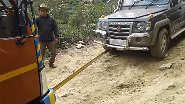 2,775 കിലോയാണ് ഫോഴ്സ് ഗൂര്ഖ എസ്യുവിയുടെ ഭാരം. ഐഷര് ടിപ്പര് 1080 -യുടേതാവട്ടെ ഏകദേശം ഒമ്പത് ടണ്ണും. തന്റെ ഭാരത്തെക്കാളും ഏതാണ്ട് മൂന്ന് മടങ്ങ് ഭാരമുള്ളൊരു വാഹനം വലിച്ച് പുറത്തെത്തിക്കുകയെന്നാല് ഫോഴ്സ് ഗൂര്ഖ എസ്യുവിയുടെ ശേഷി വളരെ മികച്ചതാണ്.