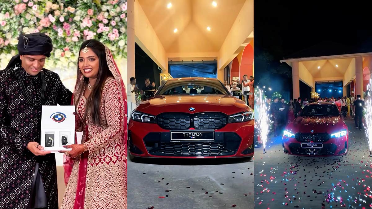 'ഫ്ലയിംഗ്ഡച്ച്മെൻ' ഇൻസ്റ്റാഗ്രാം പേജിലാണ് വീഡിയോ പോസ്റ്റ് ചെയ്തത്. ആഘോഷങ്ങൾക്കിടെ വധുവിനായി വരൻ സർപ്രൈസ് ഒരുക്കുകയും.വരൻ ഒരു താക്കോലിൻ്റെ കെയ്സ് പുറത്തെടുത്ത് വധുവിന് കൈമാറുകയായിരുന്നു. വധുവിന്റെ മുഖത്ത് ആവേശവും സന്തോഷവും വളരെ പ്രകടമായിയിരുന്നു. ചുവപ്പ് നിറത്തിലുള്ള പുത്തൻ M340i-ൻ്റെ ഡ്രൈവിങ്ങ് സീറ്റിലേക്ക് വധു കയറി വാഹനം മുന്നോട്ട് എടുത്തതും എല്ലാവരും കൈയ്യടിച്ചു.