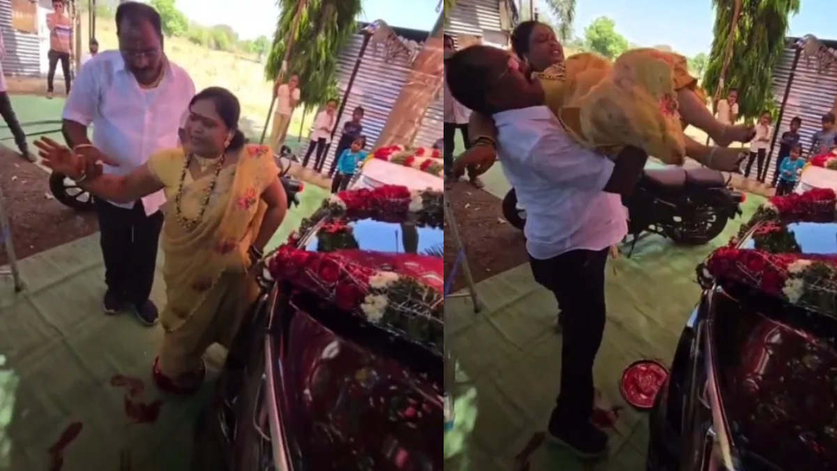 ഭർത്താവ് തൻ്റെ ഭാര്യയുടെ കാലുകൾ കുങ്കുമത്തിൽ മുക്കി ബോണറ്റിൽ വയ്ക്കുന്നതിന് വേണ്ടി ഭാര്യയെ എടുത്തുയർത്തുന്നത് കാണാം. ഭാര്യയായിരിക്കും അദ്ദേഹത്തിൻ്റെ എല്ലാ ഉയർച്ചകൾക്കും ഐശ്വര്യങ്ങൾക്കും കാരണം എന്നാണ് കമൻ്റുകളിൽ ആളുകൾ പ്രതികരിക്കുന്നത്. ഏത് ഡീലർഷിപ്പിലാണ് എന്ന കാര്യത്തിൽ വ്യക്തമായിട്ടില്ല.