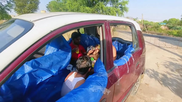 സാൻട്രോ സ്വിമ്മിംഗ് പൂളിൽ ഇരുന്നുകൊണ്ട് ഈ സുഹൃത്തുക്കൾ ശീതളപാനീയങ്ങളും ലഘുഭക്ഷണങ്ങളും ആസ്വദിച്ചിരുന്നതായും നമുക്ക് കാണാനാവും. വീഡിയോയിൽ കാണാൻ കഴിയുന്നതിൽ നിന്ന്, ഇവർ വാഹനത്തിന്റെ മുന്നിലുള്ള പാസഞ്ചർ സീറ്റും പിൻ സീറ്റുകളും നീക്കം ചെയ്തതായി മനസിലാക്കാം. ഇതിനുശേഷം, കട്ടിയുള്ള നീല ടാർപോളിൻ ഷീറ്റ് വാഹനത്തിനുള്ളിൽ ചേർത്തിട്ടുണ്ട്.