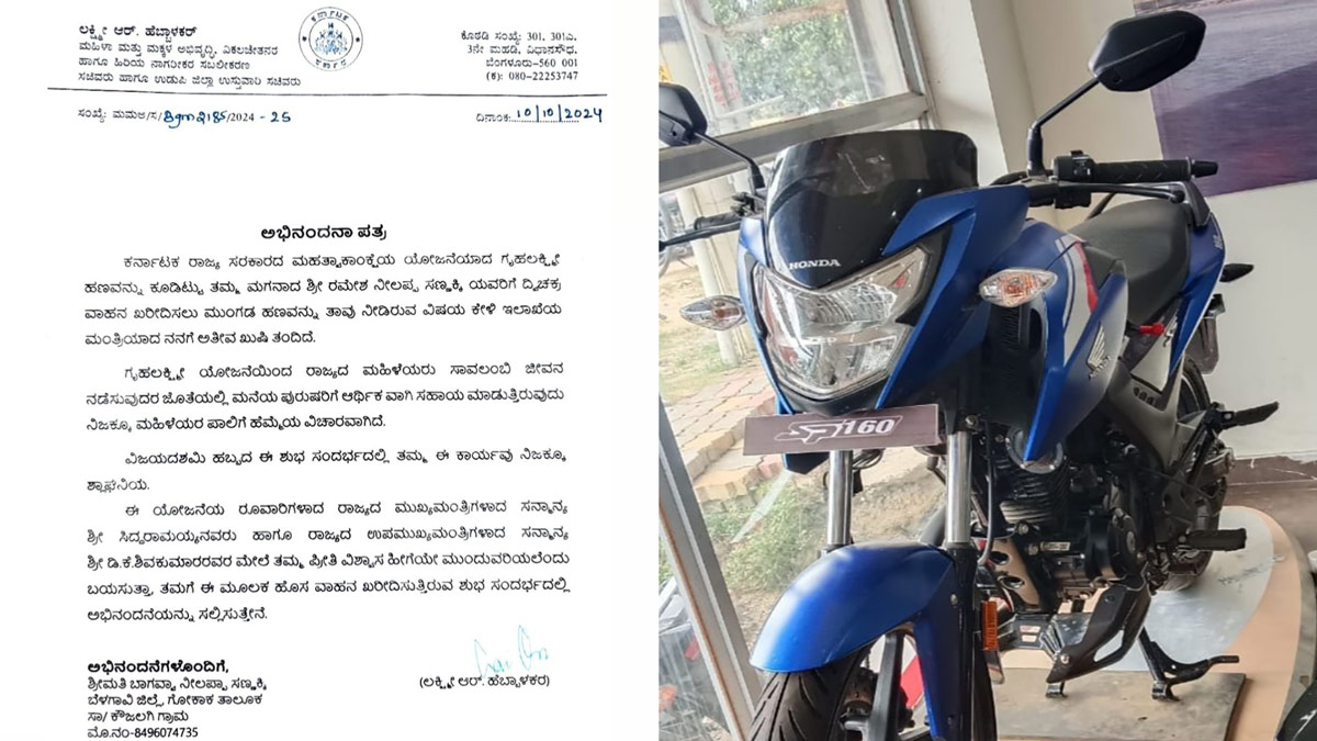 'ഗൃഹലക്ഷ്മി'യില് നിന്ന് കിട്ടിയ പണം വെച്ച് മകന് ബൈക്ക് വാങ്ങി അമ്മ! കര്ണാടക സര്ക്കറിന്റെ പദ്ധതി ഹിറ്റ്