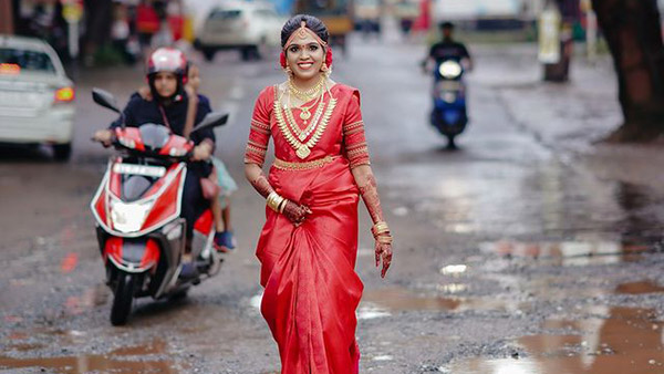 ചുവന്ന വിവാഹ സാരിയണിഞ്ഞ് സുന്ദരിയായ വധു പൊട്ടിപ്പൊളിഞ്ഞ റോഡിലെ കുഴികള് താണ്ടി പുഞ്ചിരിയോടെ നടക്കുന്നതാണ് വീഡിയോ. കുഴികളിലാകെ ചെളിവെള്ളം നിറഞ്ഞിരിക്കുന്നുണ്ട്. മറ്റ് വാഹനങ്ങള് അതിലെ കടന്നുപോകുന്നതും കാണാം. ഫോട്ടോഗ്രാഫര് ദൂരെ നിന്നാണ് ചിത്രങ്ങള് എടുക്കുന്നതെന്ന് വിഡിയോയില് കാണിക്കുന്നു.