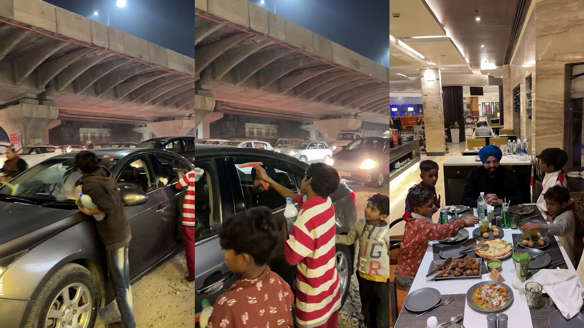 മുതിർന്നവർ മാത്രമല്ല, കുട്ടികളും ഇത്തരം പ്രവർത്തനങ്ങളിൽ ഏർപ്പെടുന്നത് പതിവാണ് സിമ്പതിയുടെ പേരിൽ പലപ്പോഴും നാം ഇത്തരം കാര്യങ്ങളിൽ വീഴാറുമുണ്ടല്ലേ. പക്ഷേ ഇത്തരത്തിൽ കാർ വൃത്തിയാക്കാൻ വന്ന വഴിയോരക്കച്ചവടക്കാരായ കുട്ടികളെ കൂട്ടിക്കൊണ്ടു പോയി 5-സ്റ്റാർ ഡിന്നർ കൊടുത്ത വ്ലോഗറിന്റെ വീഡിയോയാണ് ഇപ്പോൾ ഇൻസ്റ്റഗ്രാമിലെ വൈറൽ കണ്ടന്റ്. കാറിൽ സഞ്ചരിക്കുന്ന കവൽജീത് സിംഗ് എന്നയാൾ ട്രാഫിക് സിഗ്നലിൽ കാർ വൃത്തിയാക്കുന്ന കുട്ടികളെ ശ്രദ്ധിക്കുകയും അവരെ തന്റെ കാറിലേക്ക് ക്ഷണിക്കുകയും ചെയ്യുന്നിടത്താണ് വീഡിയോ തുടങ്ങുന്നത്.