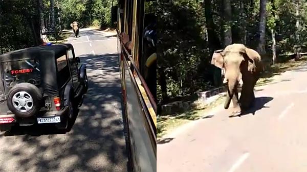 കെഎസ്ആർടിസിയ്ക്ക് മുന്നിലുണ്ടായിരുന്ന ജീപ്പ് പോലും കൊമ്പന്റെ വരവിന് മുമ്പിൽ അടിപതറി പിന്നോട്ട് വലിഞ്ഞു. ഈ അവസരത്തിലാണ് നമ്മുടെ കെഎസ്ആർടിസി ഇതൊക്കെ നമ്മൾ എത്ര കണ്ടതാ എന്ന മട്ടിൽ കൊമ്പനെ തെല്ലും കൂസാതെ മുന്നോട്ട് പോയത്.