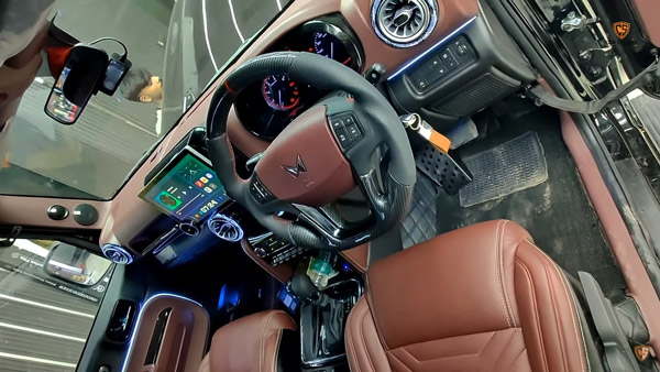 ആംബിയൻ്റ് ലൈറ്റിംഗ്, ഒറിജിനൽ നാപ്പ ലെതറിൽ ഫിനിഷ് ചെയ്ത പ്രീമിയം സീറ്റ് കവറുകൾ, എഎംജി ഇൻസ്പേർഡ് എസി വെൻ്റുകൾ, തൈ സപ്പോർട്ട്, ലെഗ് സപ്പോർട്ട് ലെതർ, 9 ഡി ഫ്ലോറിംഗ്, റേഞ്ച് റോവർ പ്രചോദിത ഇൻഫോടെയ്ൻമെൻ്റ് സ്ക്രീൻ, ഫ്രണ്ട് ആംറെസ്റ്റ്, മൾട്ടിപ്പിൾ ഗ്ലോസ് ബ്ലാക്ക് ഘടകങ്ങൾ എന്നിവയാണ് ക്യാബിനിലെ ഹൈലൈറ്റുകൾ.