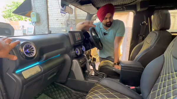 രണ്ട് അധിക പ്രൊജക്ടർ ഫോഗ് ലാമ്പുകൾക്കൊപ്പം ഒറിജിനൽ ഫോഗ് ലാമ്പുകളും ബമ്പറിലേക്ക് സംയോജിപ്പിച്ചിരിക്കുന്നു. കസ്റ്റം-ബിൽറ്റ് അണ്ടർബോഡി സംരക്ഷണവും ചേർത്തിട്ടുണ്ട്. ഹെഡ്ലൈറ്റുകൾ സ്റ്റോക്ക് തന്നെയാണ് എങ്കിലും ബൾബുകൾ എൽഇഡിയിലേക്ക് അപ്ഡേറ്റ് ചെയ്തിട്ടുണ്ട്. അലോയ് വീലുകൾ സ്റ്റോക്ക് ആണെങ്കിലും കാർബൺ ചെയ്തിട്ടുണ്ട്. വീലുകളിൽ മഞ്ഞ ഇൻസെർട്ടുകൾ ചേർത്തിട്ടുണ്ട്. ഹമ്മറിൽ നിന്ന് പ്രചോദനം ഉൾക്കൊണ്ടാണ് റൂഫ് ടോപ്പിൽ ലൈറ്റുകൾ ചേർത്തിരിക്കുന്നത്. ഇതിൻ്റെ വില 2,500 രൂപയാണ്.