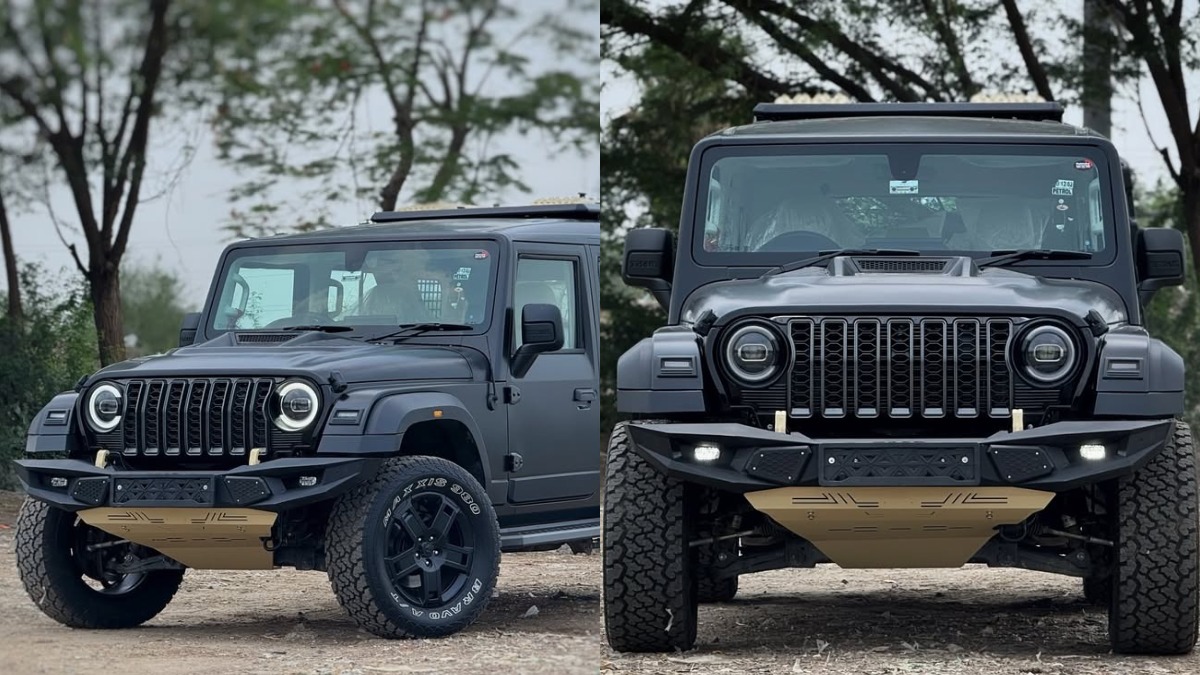 ക്ലാസിക് നോയിഡ എന്ന ഇൻസ്റ്റാഗ്രാം പേജിലാണ് മോഡിഫൈ ചെയ്ത ഥാർ റോക്സിൻ്റെ ചിത്രങ്ങൾ പ്രത്യക്ഷപ്പെട്ടത്. വാഹനത്തിൽ വരുത്തിയിരിക്കുന്ന മാറ്റങ്ങളിലേക്ക് നോക്കിയാൽ മുൻവശത്തായി ഫങ്ഷണൽ എയർ സ്കൂപ്പുള്ള ഒരു പുത്തൻ ബോണറ്റ് ആണ് വാഹനത്തിന് ലഭിക്കുന്നത് എന്ന് ഒറ്റനോട്ടത്തിൽ കാണാം. എഞ്ചിനെ തണുപ്പിക്കുന്നതിന് വേണ്ടി ഈ സ്കൂപ്പ് സഹായിക്കുകയും ചെയ്യും. അതോടൊപ്പം തന്നെ ജീപ്പ് റാങ്ലർ റൂബിക്കൺ മോഡലിൽ ലഭിക്കുന്ന ഹണികോമ്പ് മെഷുള്ള സെവൻ-സ്ലാറ്റ് ഗ്രില്ലാണ് നൽകിയിരിക്കുന്നത്.