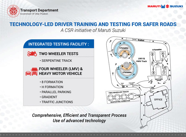 കേരളത്തിൽ ഡ്രൈവിങ്ങ് ടെസ്റ്റ് വിഷയത്തിൽ വലിയ വിഷയമായിരിക്കുന്ന സന്ദർഭത്തിലാണ് അയോധ്യയിൽ മാരുതി സുസുക്കിയുടെ ഡ്രൈവിങ്ങ് ടെസ്റ്റ് ട്രാക്ക് ചർച്ചാവിഷയമാകുകയാണ്. റോഡ് സുരക്ഷയ്ക്കായുള്ള കോർപ്പറേറ്റ് സോഷ്യൽ റെസ്പോൺസിബിലിറ്റി (സിഎസ്ആർ) സംരംഭത്തിന് വേണ്ടി ഉത്തർപ്രദേശിലെ അയോധ്യയിലുള്ള ഡ്രൈവർ ട്രെയിനിംഗ് ആൻഡ് ടെസ്റ്റിംഗ് ഇൻസ്റ്റിറ്റ്യൂട്ടിൽ മാരുതി സുസുക്കി അതിൻ്റെ ആദ്യത്തെ ഡ്രൈവിംഗ് ടെസ്റ്റ് ട്രാക്ക് വിജയകരമായി പ്രവർത്തിപ്പിച്ചിരിക്കുകയാണ്.
