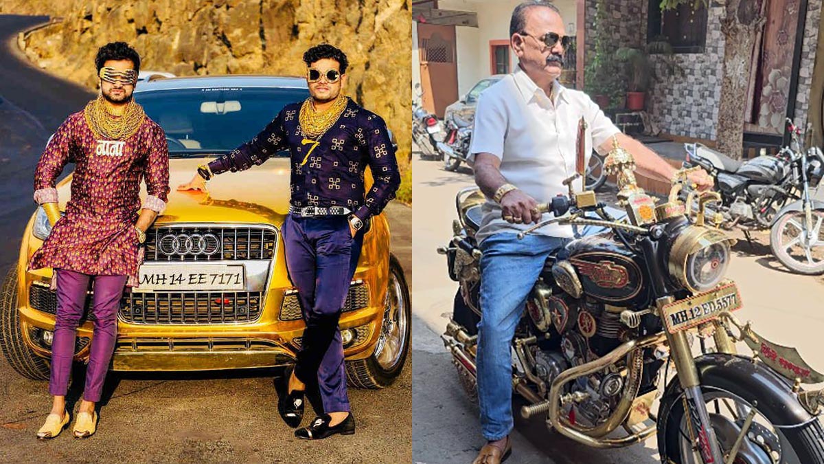 സണ്ണിയോടൊപ്പം തന്നെ സ്വർണ്ണത്തോടുളള സ്നേഹം കൊണ്ട് തൻ്റെ റോയൽ എൻഫീൽഡ് ബുളളറ്റ് മൊത്തമായി സ്വർണ്ണത്തിൽ പൊതിഞ്ഞിരിക്കുകയാണ് മഹാരാഷ്ട്രയിൽ നിന്നുളള ഒരു പൊന്നമ്മാവൻ. മോട്ടോർസൈക്കിളിൻ്റെ യഥാർത്ഥ കറുപ്പ് നിറം നിലനിർത്തിയിട്ടുണ്ട്. ക്രോം ഭാഗങ്ങളിൽ ചിലത് പിച്ചള പൂശിയ ട്രിമ്മുകൾ ഉപയോഗിച്ച് ഉടമ സമർത്ഥമായി മാറ്റിയിട്ടുണ്ട്. ഉദാഹരണത്തിന്, ടേൺ ഇൻഡിക്കേറ്റർ, ഹെഡ്ലാമ്പ് കവർ, നമ്പർ പ്ലേറ്റ്, ഫ്രണ്ട് ഫോർക്ക് കവറിൻ്റെ മുകൾ ഭാഗം എന്നിവ ഈ ഷേഡിൽ പൂർത്തിയാക്കിയിരിക്കുകയാണ്.